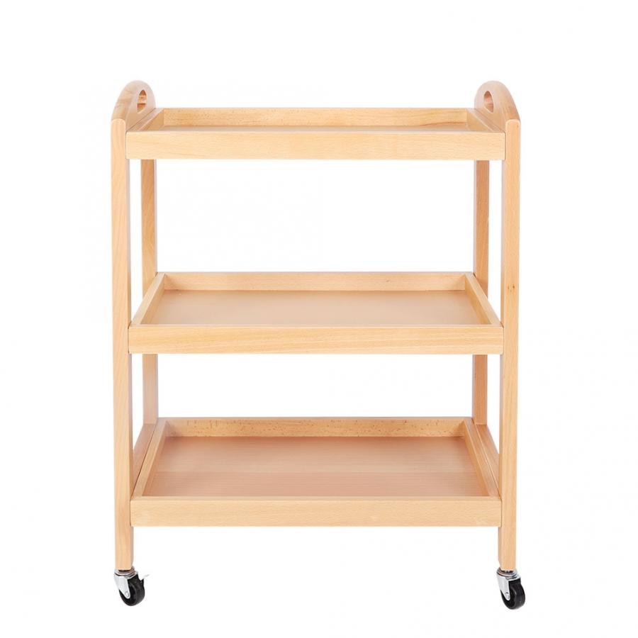 Household Kitchen 3-Tier Beech Cart Rolling Gadget Trolley Movable Storage Serving Trolley